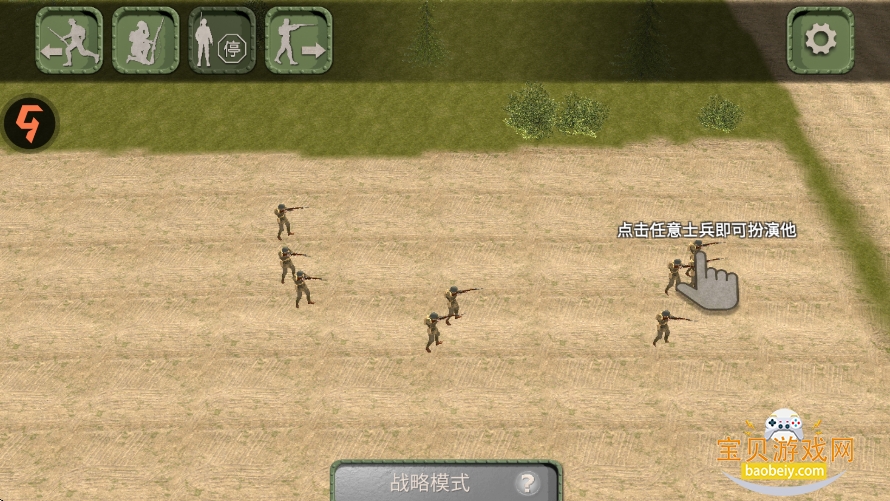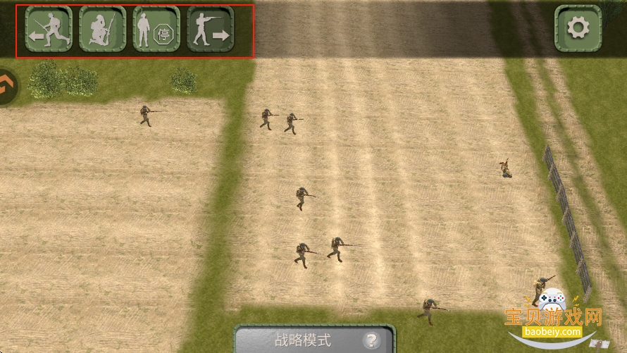 4、玩家可以通过左上角功能来操控士兵的前进或者撤退