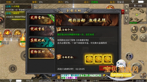 地图刷出300个怪物[杀我爆实物],击杀必爆实物,一波下来收获丰富,可兑换大量直购币