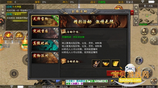 地上散落大陆实物,元宝,灵符,材料等,60秒后人人可以捡取,抢到就是赚到