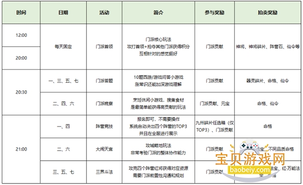 ①门派奖励如上图,官方也有在每个活动下面标注更具体的奖励,大家各取所需投标。活动每天、每周都会持续,如果不是特别急需,不要全款拍!(元宝多的玩家可以忽视)