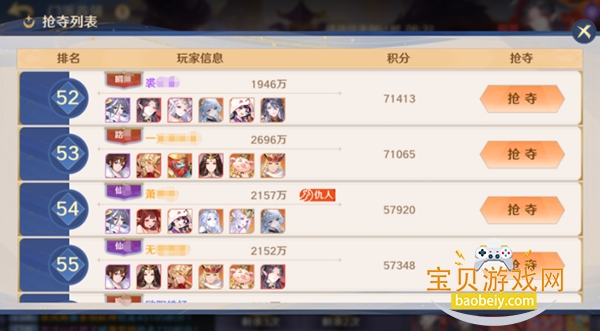 ③抢夺:选择高积分并且你能打过的人薅(不用着急打完次数,坚持“螳螂捕蝉,黄雀在后”原则);如果第一名公会已经远超你们,建议针对其他分值相近的门派,保证自己门派的排名靠前获得更多奖励。