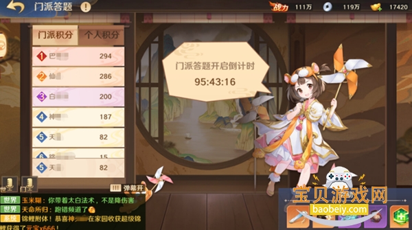 门派答题是类似知识问答的方式,每道题有4个答案选项,总共十道题,跟参与人数、每个人答对数相关,同样门派积分总和越高获得的奖励越高。