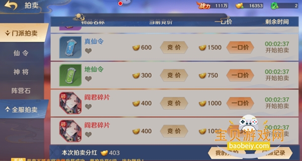 ② 仙令是前期争夺最紧张的竞品,基本都是一口价购买,要拼手速(倒计时3秒可以疯狂点)。如果对冲战力没那么紧迫,可以错峰竞拍,低价买入。