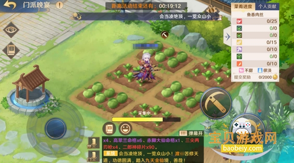 门派晚宴是跟战力无关,纯活跃参与的活动。门派长老可以决定当天食谱,门派成员根据食谱提示找对应食材就行(系统也会有一个目标提示),这个是比较轻松能获得门派贡献、奖励的活动,建议也不要错过。
