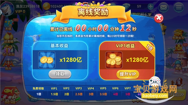 4、离线奖励,每两小时累计奖励,离线也能轻松领取!
