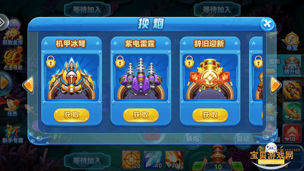 游戏内提供了多种强力炮台供玩家解锁,威力越大的炮台捕鱼成功率越高哦