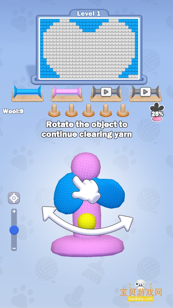 2.三个一模一样的颜色的毛线就可以收集到一捆。