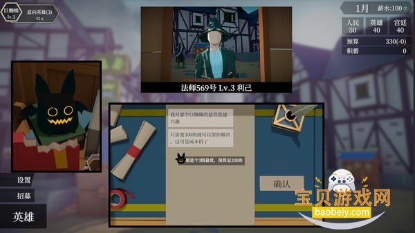 2.独特模拟玩法:扮演低微卫兵张贴怪物悬赏,委托不同性格等级英雄处理怪物,需以低赏金完成任务。工作之余要应付各种事务,在宫廷、人民、英雄公会间抉择,维持支持度以保存活。