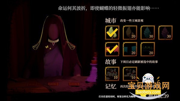 多周目系统:游戏采用蝴蝶效应机制,每周目积累的财富可转化为"蝴蝶"资源。这些资源可用于购买景观、更换BGM,甚至解锁隐藏记忆改变关键剧情,为多周目挑战提供差异化体验。