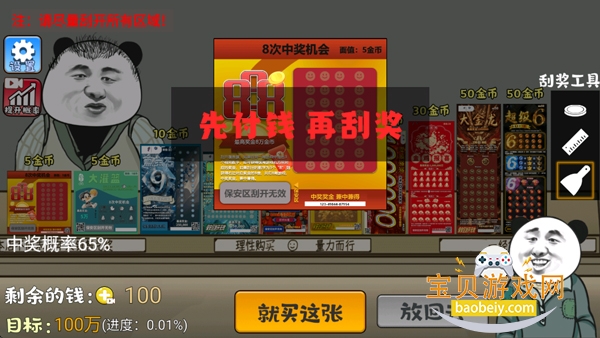 4、购买选择刮奖工具来刮奖,没中则要丢掉;