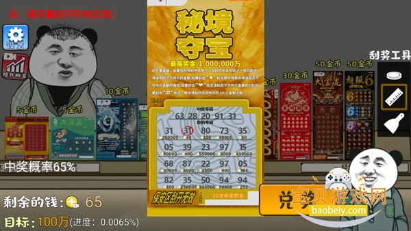 5、中奖了会有红圈,点击兑奖即可。而玩家的目标是需要达成100万,现在开始你的刮奖之路吧!