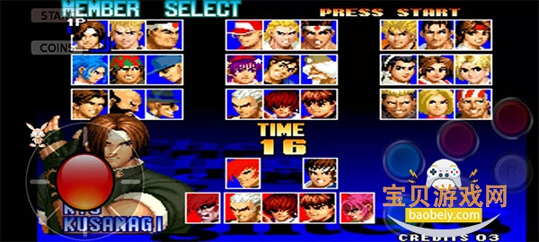 1、首先下载拳皇97风云再起手机版,投币确认开始游戏,选择我们喜欢的英雄。