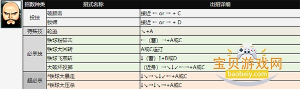 技能:铁球大压杀、铁球钝击、遁逃、铁球粉碎击、破颜击、铁球大回转。