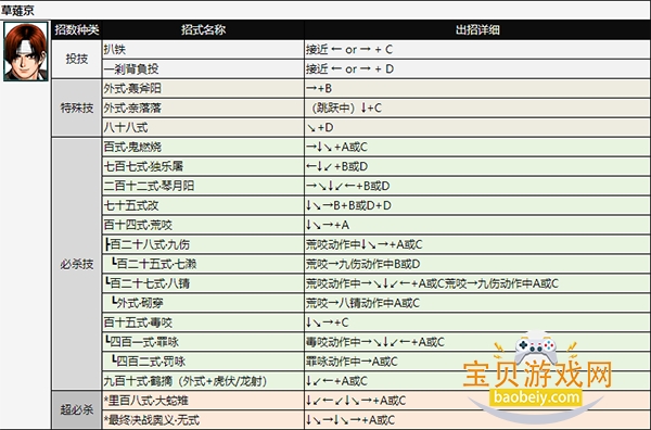 嘿,各位拳皇爱好者!是不是每次玩《拳皇98》时,都为搞不清那些酷炫招式咋出而烦恼?咱这“拳皇98出招表”就能完美解决这问题!它详细列出了每个角色的各种招式,包括普通攻击、必杀技、超必杀技等等。有了它,你在游戏里就能轻松施展出华丽连招,虐翻对手。不管你是新手想快速上手,还是老手想精进技巧,出招表都能给你提供精准指导。再也不用凭感觉瞎按,浪费宝贵的战斗时间啦。让你在拳皇的世界里,凭借高超的出招技巧,尽情享受热血格斗的快感,体验更畅快的游戏乐趣,轻松成为格斗场上的王者!赶紧来了解一下吧,它会是你在《拳皇98》游戏中不可或缺的得力助手。