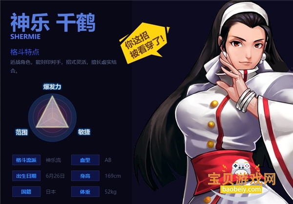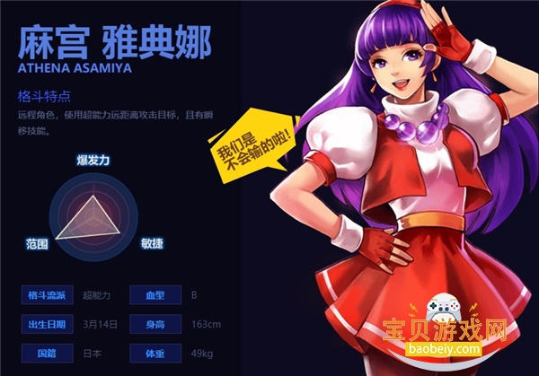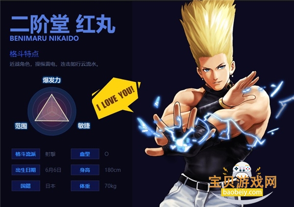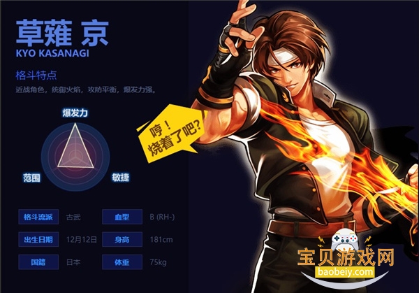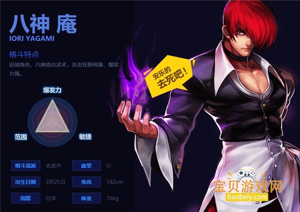 特点:近战角色,八神流古武术,连击狂野残暴、爆发力强。