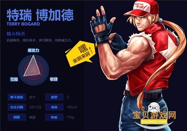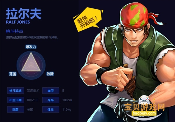 特点:强悍凶猛的技能和硬派到爆的格斗风格。
