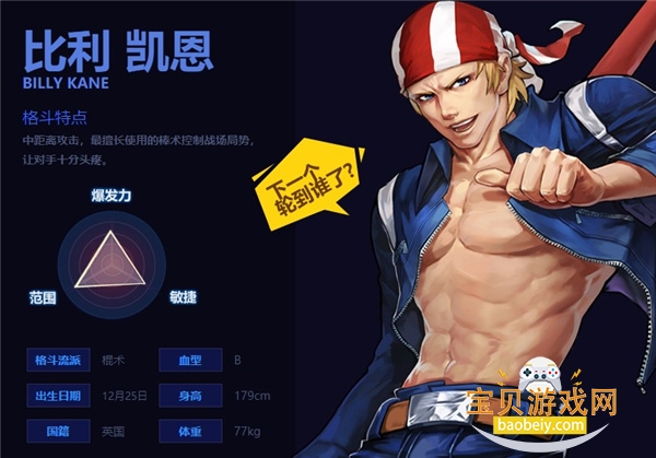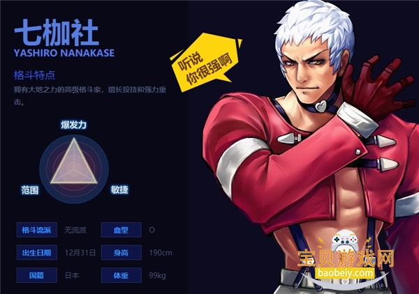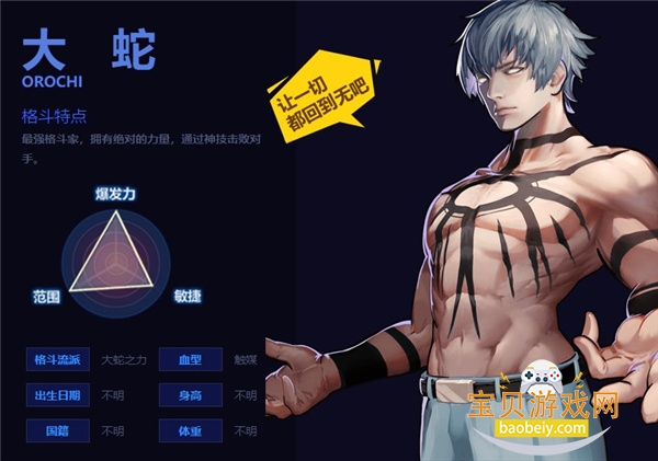 特点:最强格斗家,拥有绝对的力量,通过神技击败对手。