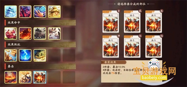 决斗四件套(火攻四件套)+暴击俩件套;