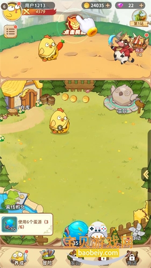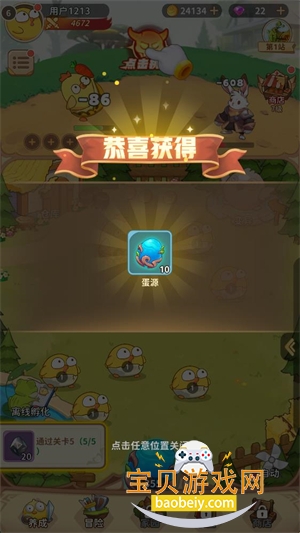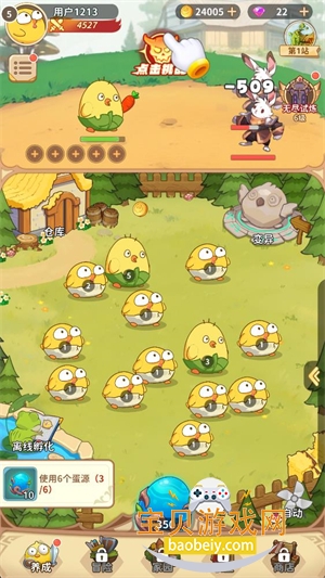 1、进入游戏后点击下方蛋壳可以孵化小鸡。