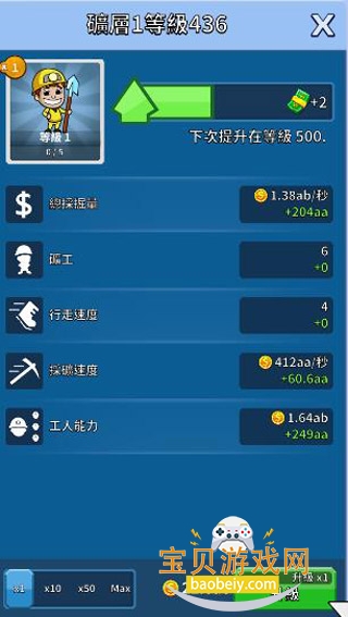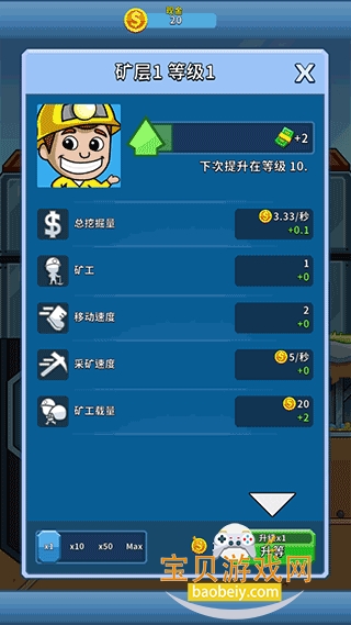 1. 这是一款混合采矿管理与赚取金钱的模拟游戏,目标是建立黄金资源并升级获取更多闲置收益。