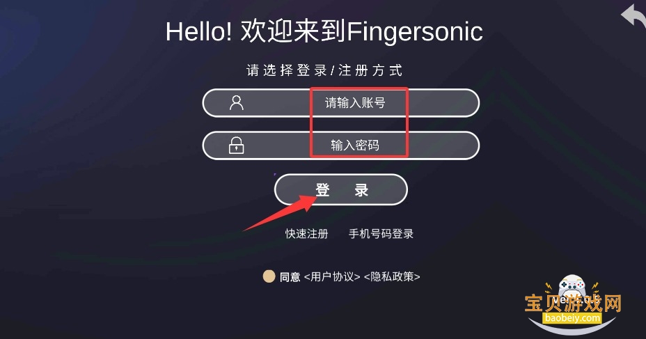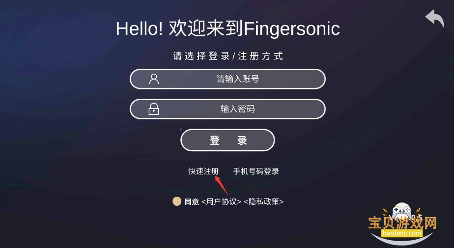 2、登录界面下方设有"快速注册"按钮,点击跳转至注册页面。