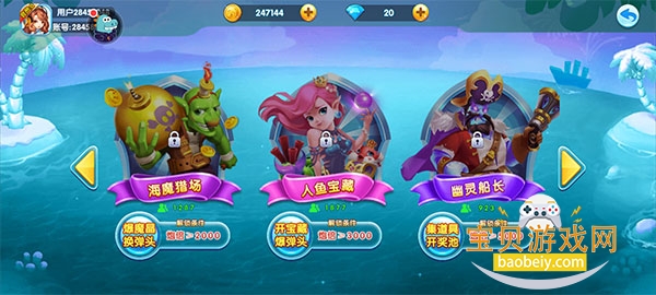 2、现在玩家们看到的是中级场所,并且包括了海魔猎场、人鱼宝藏、幽灵船长等,并且解锁条件是挺有挑战性的,必须具备着相对应的炮数解锁条件才能进入到游戏中。