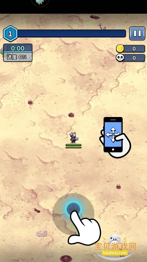 1、玩家进入游戏后通过滑动屏幕来控制角色移动。