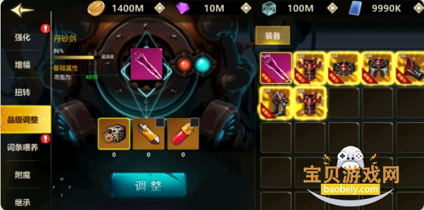 ①品级调整·品级:决定装备基础属性的高低:攻、防、血可通过[品级调整]功能对[品级系数]重新随机。