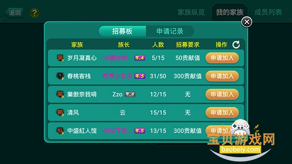 3、在【家族招募板】中找到心仪的家族并申请。