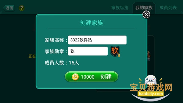 2、然后输入家族名称、家族勋章,并【支付1w多乐币】完成创建。