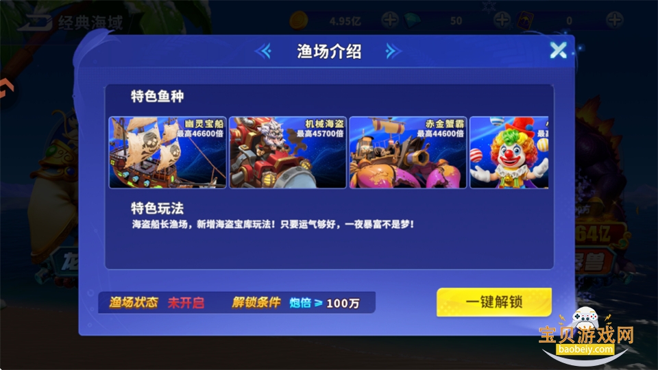 特色玩法:海盗船长渔场,新增海盗宝库玩法!只要运气够好,一夜暴富不是梦!