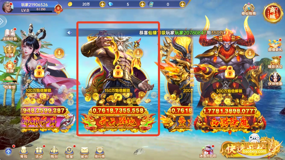 勇士们可以通过将炮倍提升至150万,解锁崭新的挑战场次,感受天地分开,造化万物的浩瀚。
