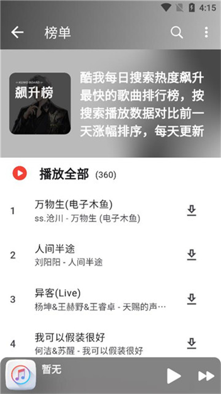 实时更新:每日都会为用户推荐最新歌单,热门歌曲实时更新,让用户随时享受潮流视听。