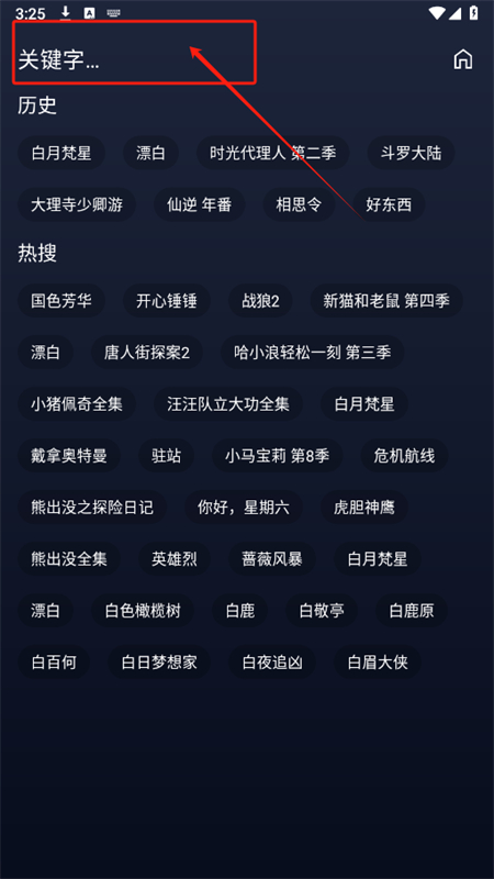 1、打开进入首页后可以在搜索框输入关键词来搜索想看的影视作品