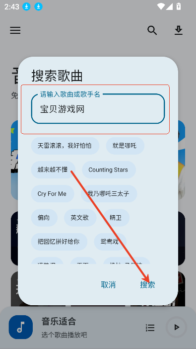 还能够搜索框输入歌手名,歌名等,点击搜索进行精准检索