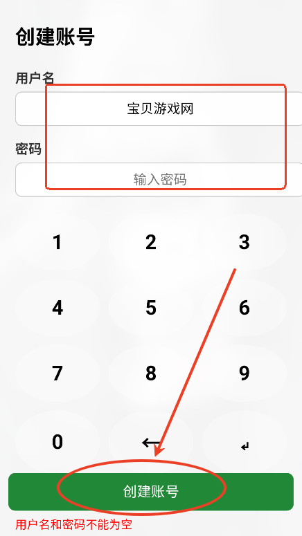 输入用户名,任意密码,点击创建账号即可