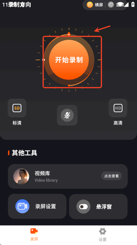 用户可以点击录屏设置选择是横屏录制还是竖屏录制,同时也可以选择是否开启声音录制。