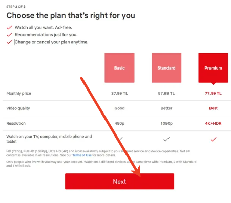 5、选择套餐,一般推荐性价比最高的 Premiun套餐,可以最多4个人同屏观看