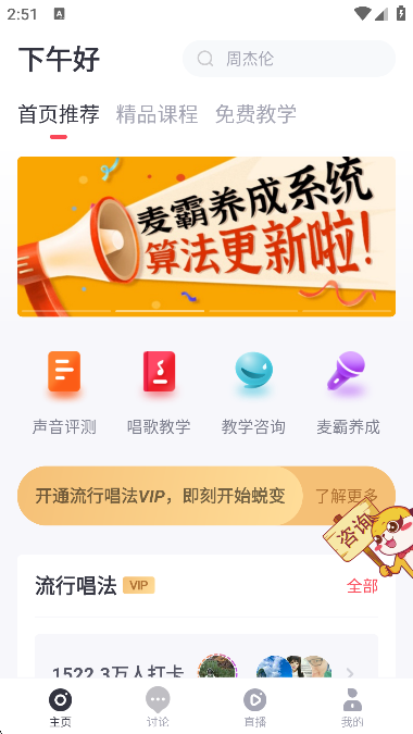 专业课程体系:拥有一套科学系统的课程,从基础的发声方法、呼吸技巧,到进阶的高音、低音控制,再到情感表达等内容都有涵盖。课程由浅入深,适合不同水平的用户,无论是零基础的初学者还是有一定基础想进一步提升的歌手。