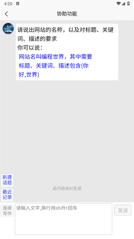 4、AI云助手的写作模块,可以帮助用户进行文本创作,包括写作、编辑、校对等功能。用户可以通过语音或文字输入需要写作的内容,AI云助手将智能辅助用户完成写作任务。