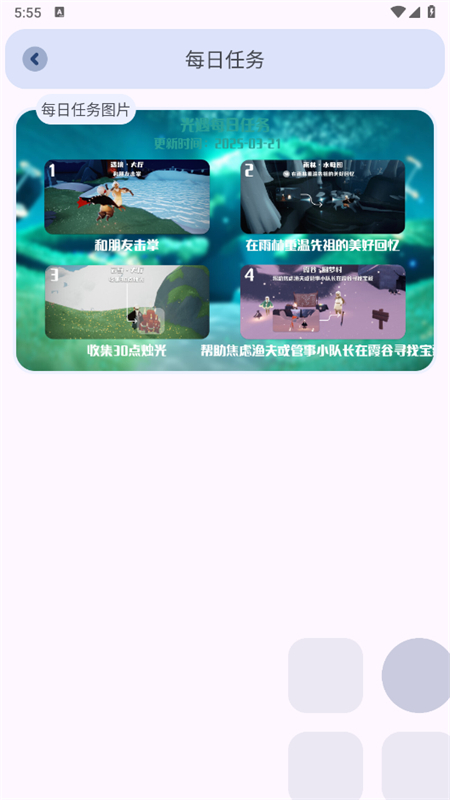 2、日常任务与蜡烛指引:提供详尽的每日任务说明及大蜡烛、季节蜡烛位置,助力玩家高效完成日常,收获更多游戏资源。