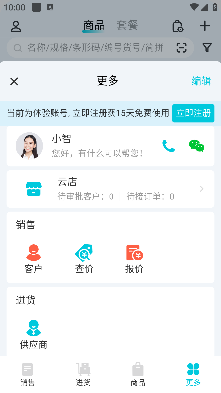 移动开单收银:支持随时随地扫码、查价、开单、收银,可在店内或外出谈业务时使用,且客户历史价记忆功能方便快速开单 。