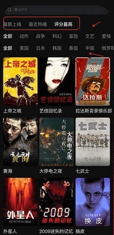打开app,用户可以使用分类功能,挑选符合自己口味的电影