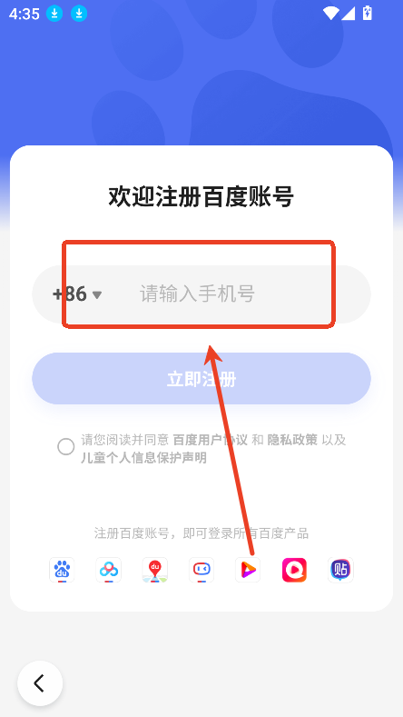 4、点击下方注册按钮,可以直接输入手机号验证注册新账号
