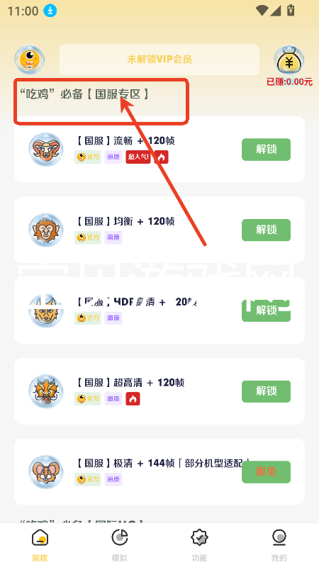还有吃鸡专区国服版本,可以选择帧率解锁
