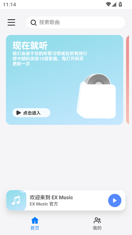 进入首页,可以点击进入,筛选歌曲