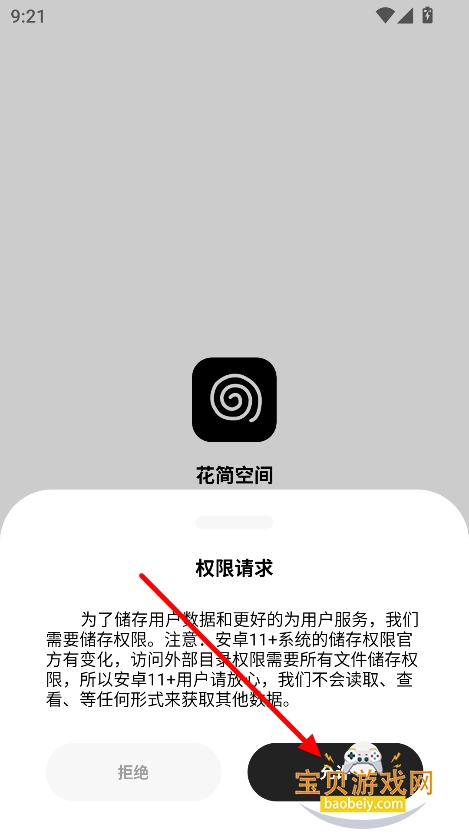 1、在宝贝游戏网下载安装,点击允许授权,进入下一界面
