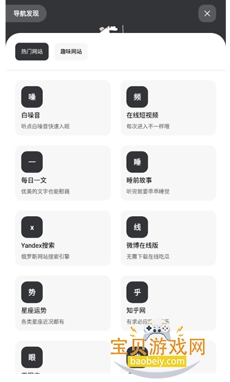 2、点击“导航发现”可以搜索网站或者游戏直播