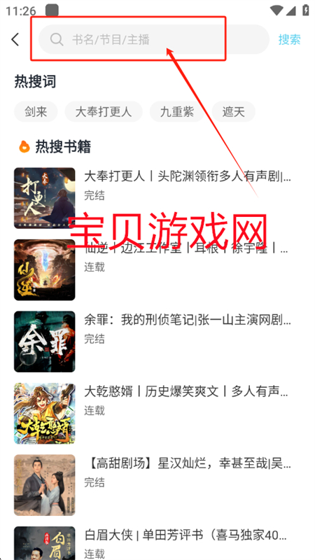 2、可以在搜索框输入自己想听的书名/节目/主播