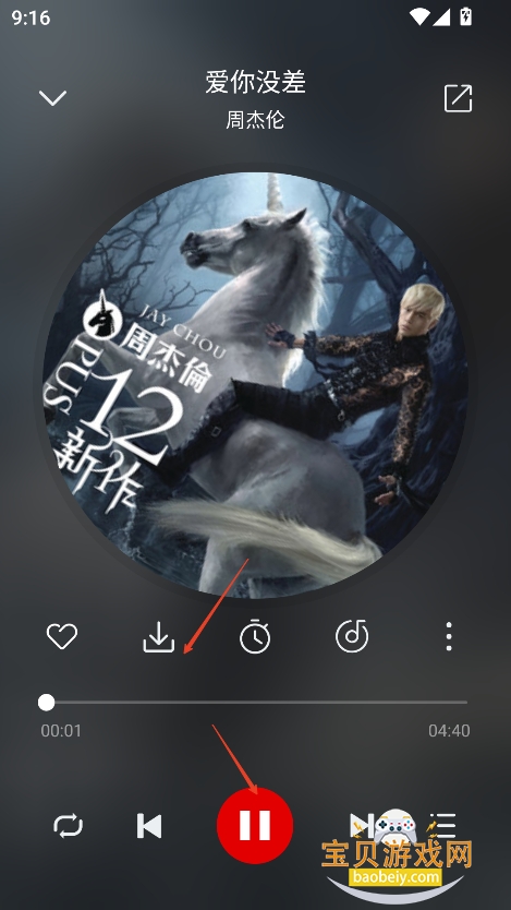 5、点击进入喜欢的歌曲界面,可以点击播放,或者点击下载